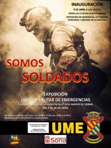 Como inauguración de la exposición "Somos Soldados" que estará unos días en nuestra ciudad la Unidad Militar de Emergencia realiza una exposición de materiales, actividades infantiles y arriado de la bandera. También se han progamado juegos para los más pequeños con perro de rescate y un incendio simulados.