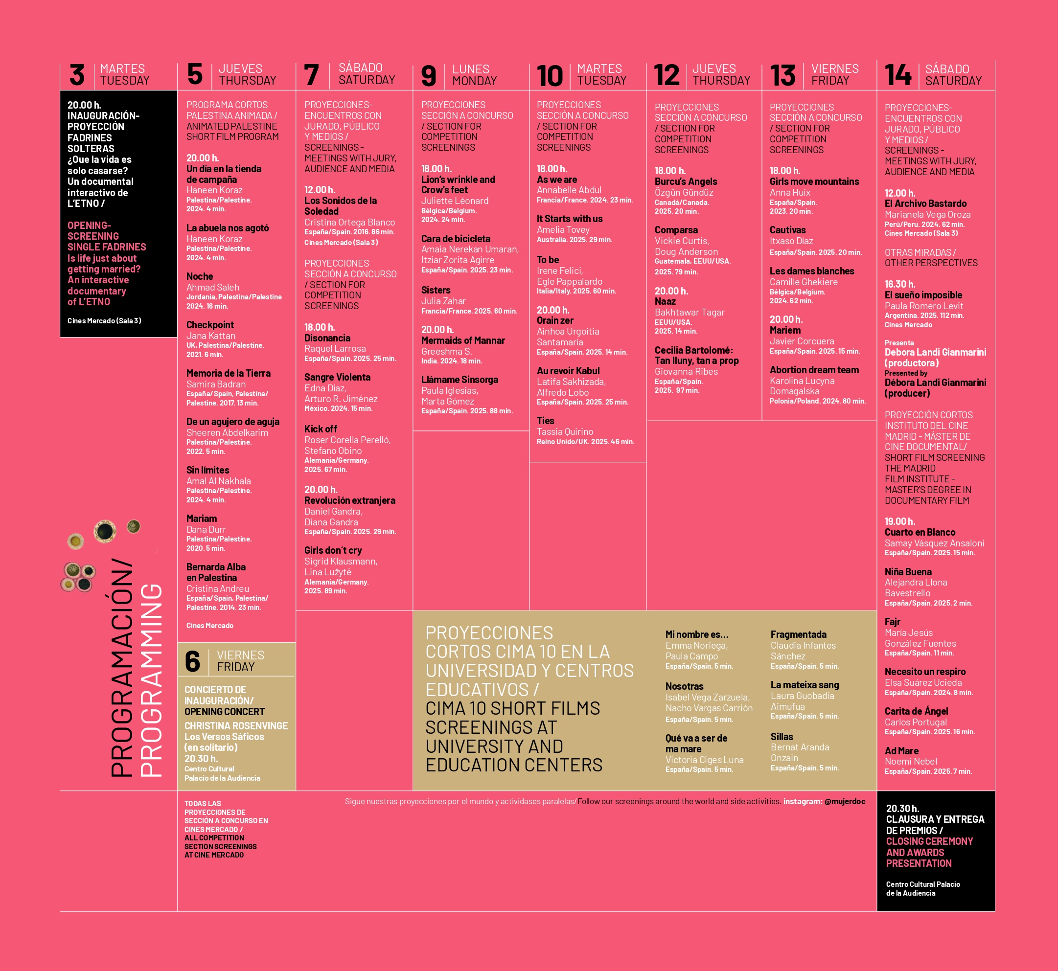 Destacar para la jornada del día de hoy la dedicación a Palestina con las siguientes proyecciones: